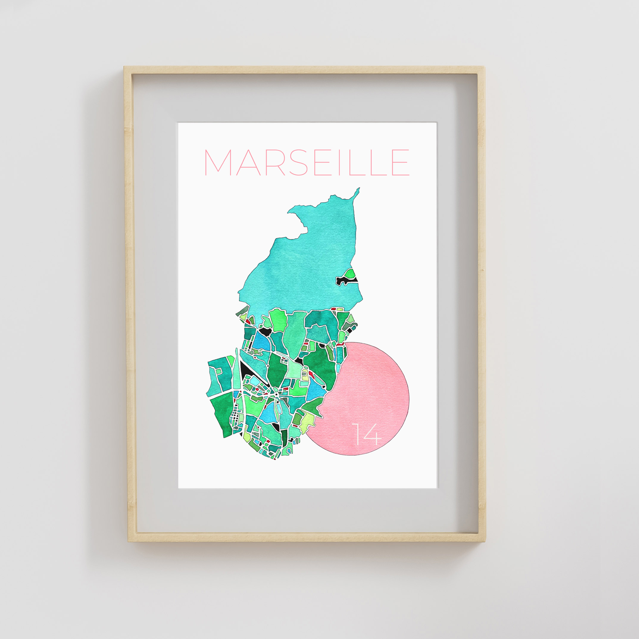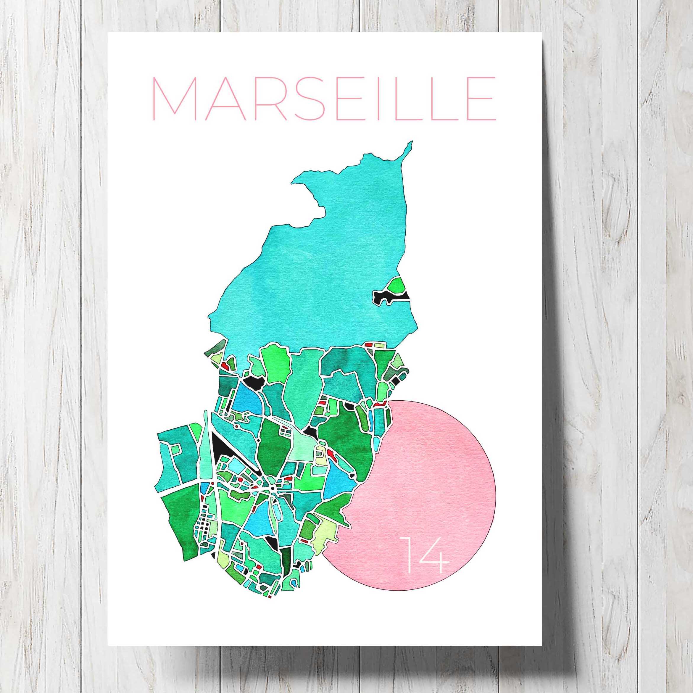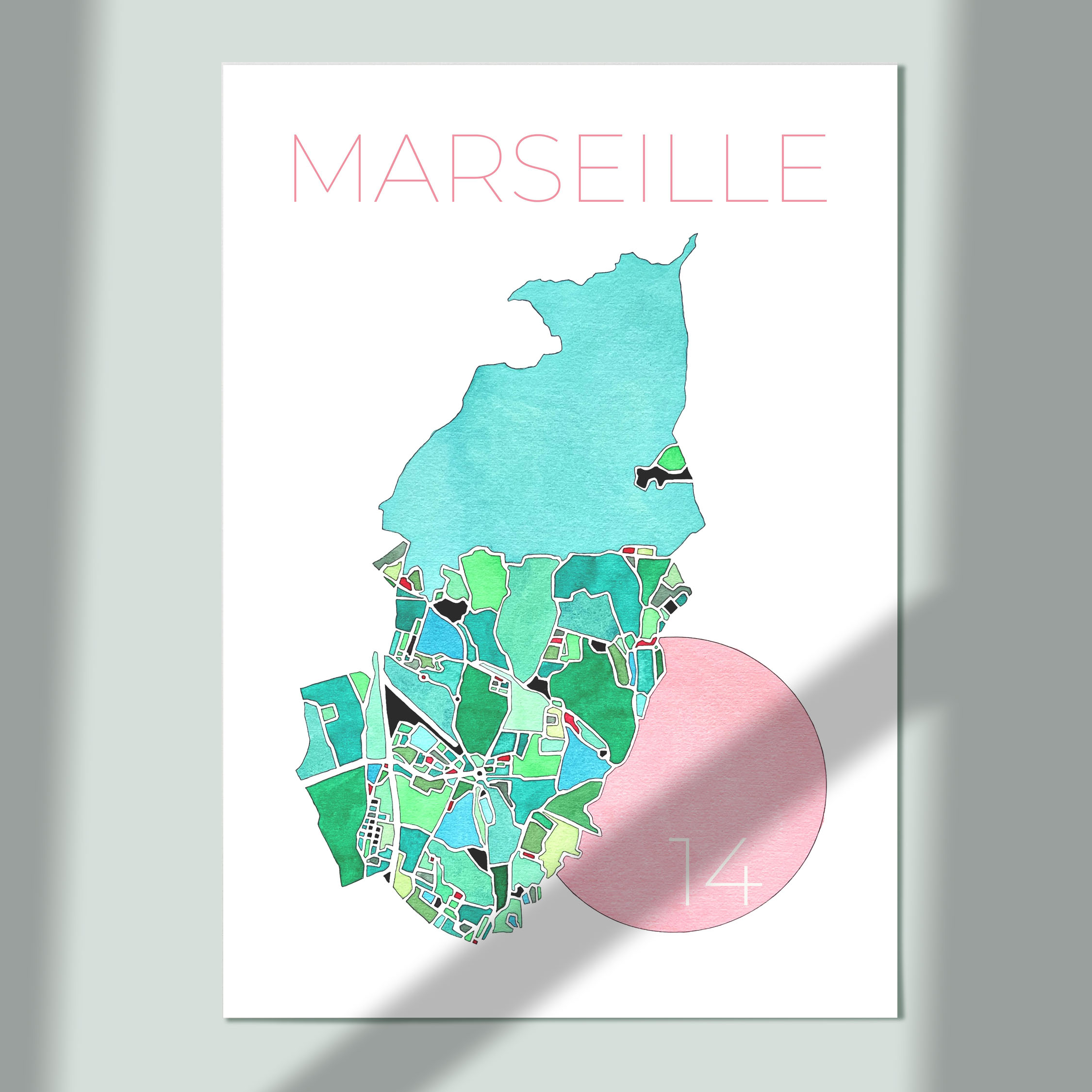 Un plan artistique du 14e arrondissement de Marseille, entre ville et campagne.