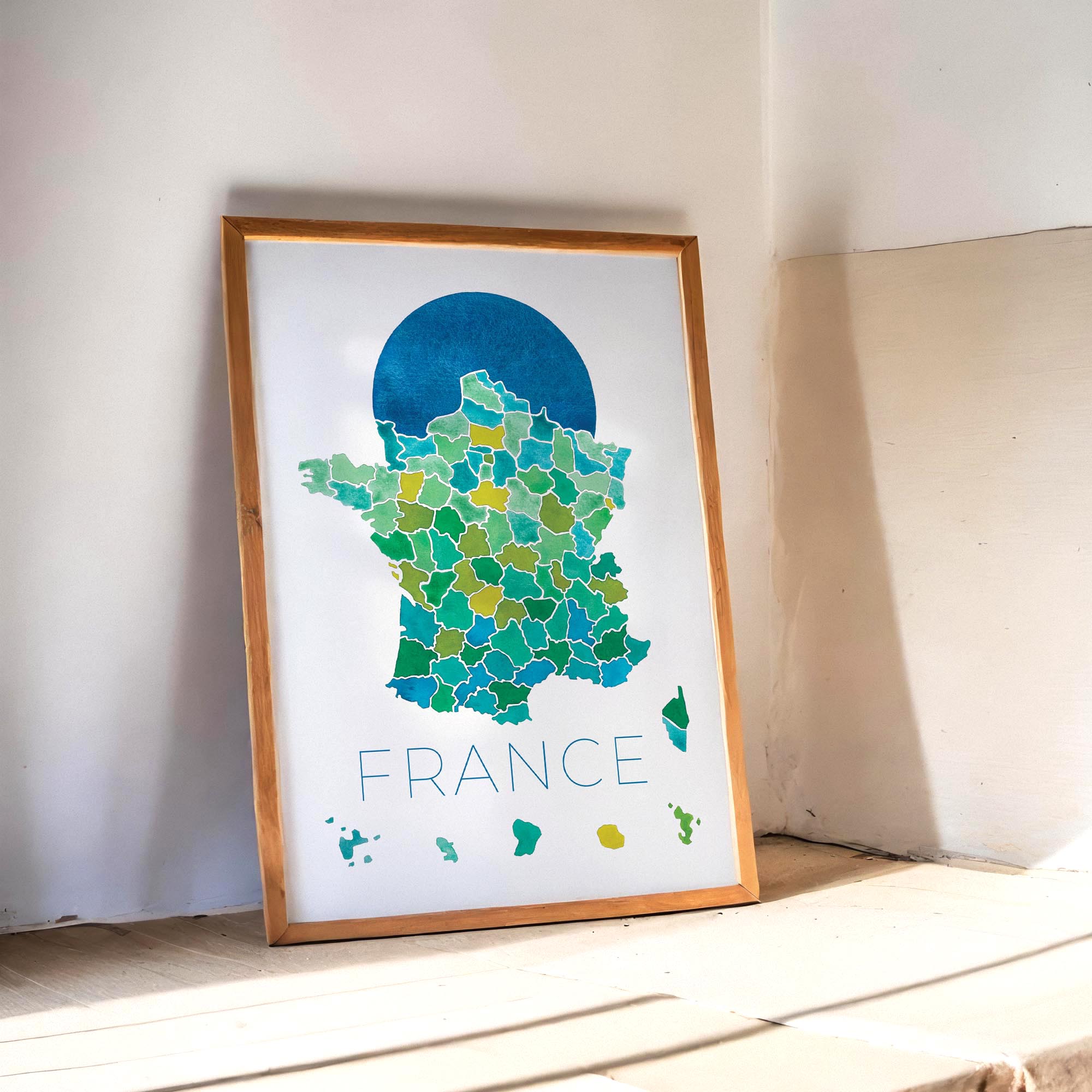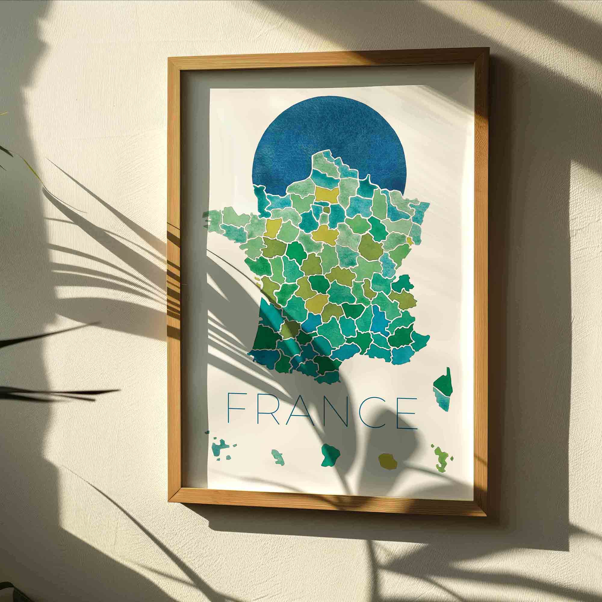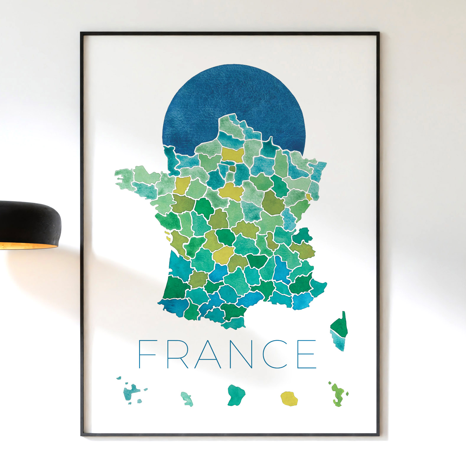 Un plan artistique de la France, peint à la main à l’aquarelle. Cette carte revisite le territoire dans une interprétation à la fois précise et contemporaine. Une manière élégante de représenter la...