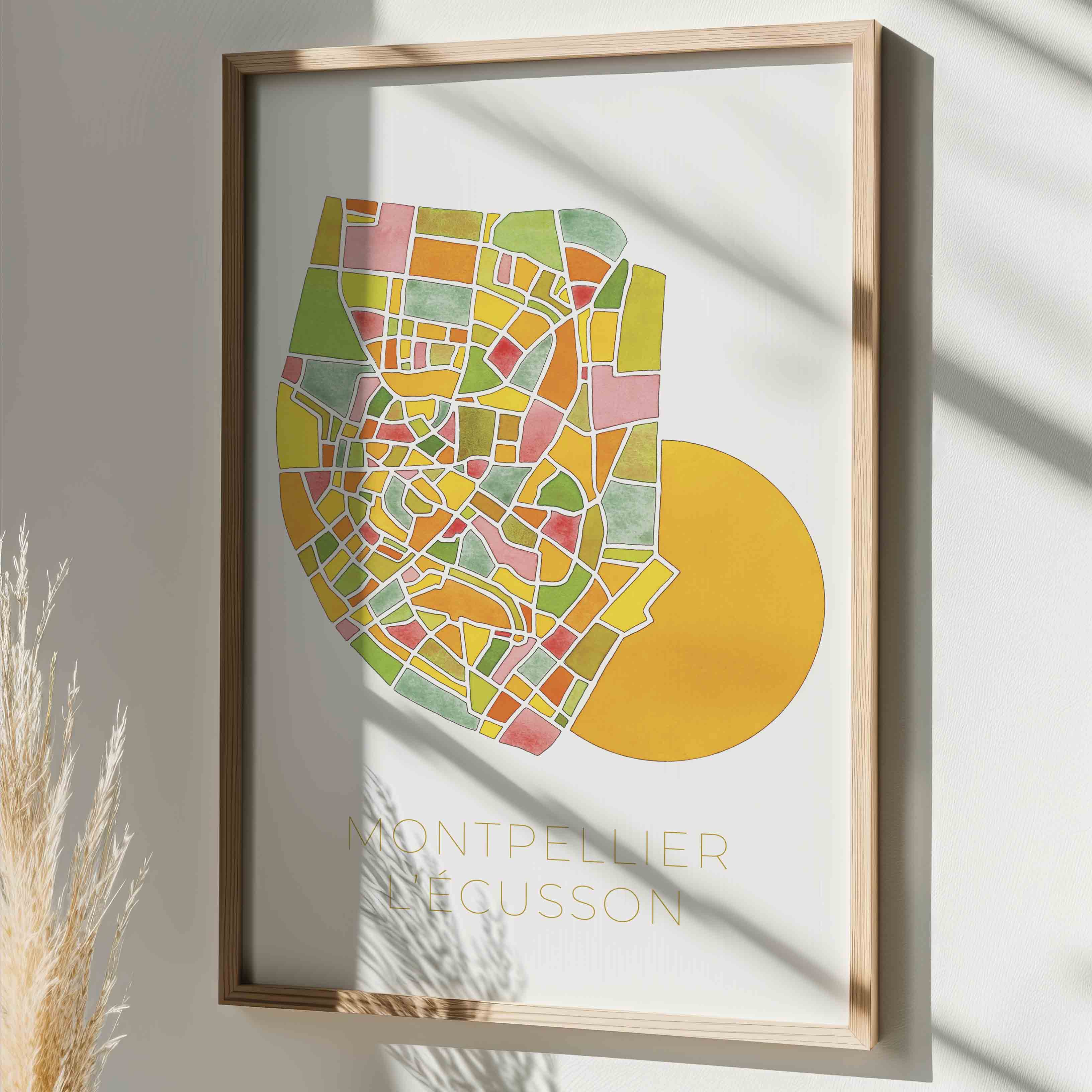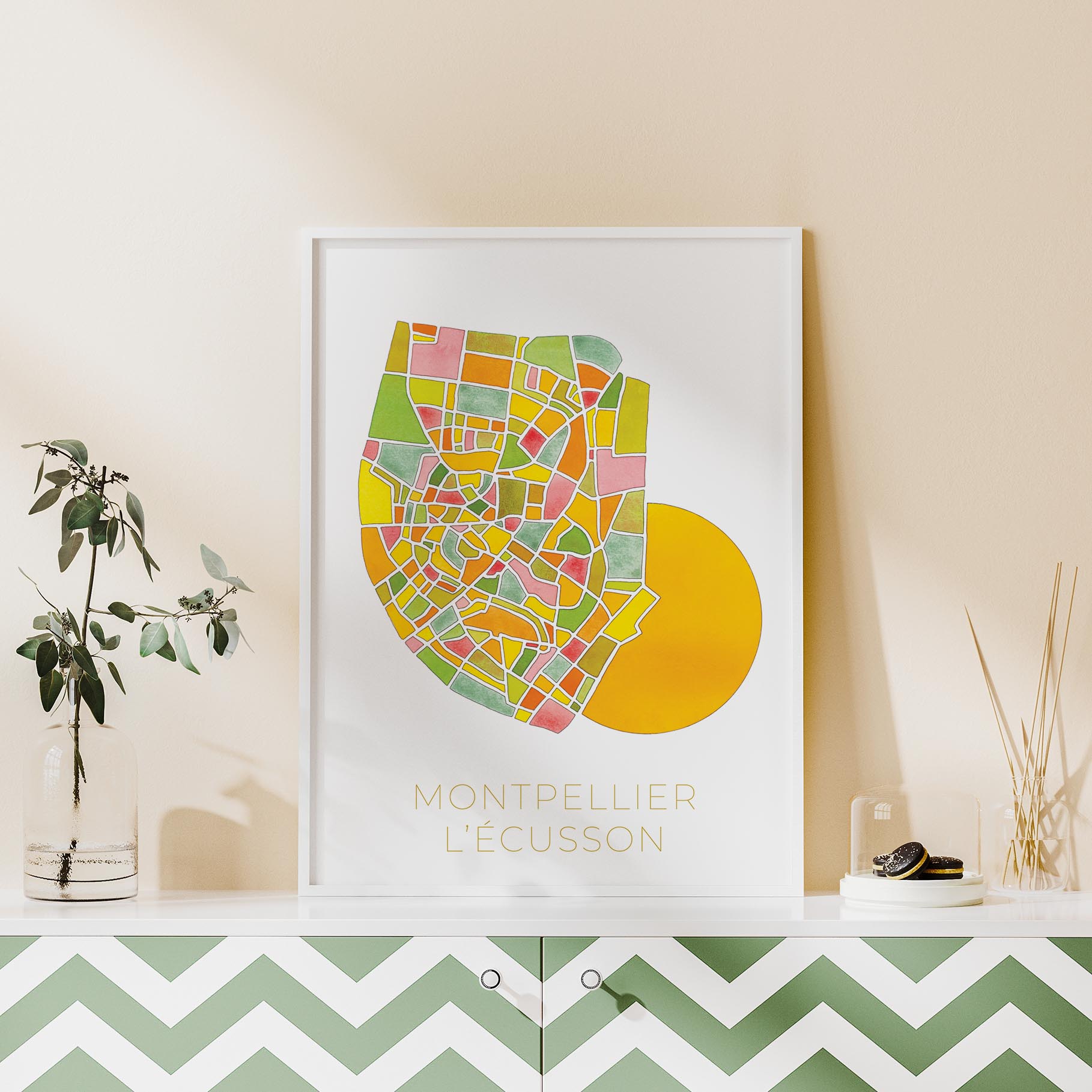 Un plan artistique de Montpellier centré sur l’Écusson, son cœur historique. Peinte à la main à l’aquarelle, cette carte révèle un quartier vibrant, intemporel et lumineux. Une manière élégante de...